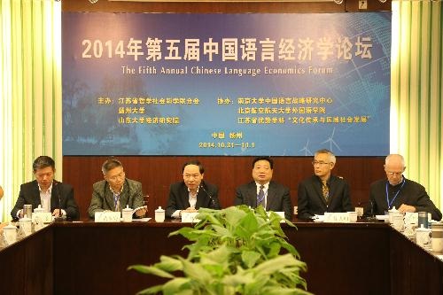 本届论坛共邀请了来自南京大学、山东大学、武汉大学、北京语言大学、澳门大学、德国日本研究所等国内外40余所高校和科研机构的50多名语言学界和经济学界高级专家学者参加论坛,参会人员数量、高校分布以及议题等诸多方面都是历届之最。扬州大学校长焦新安教授出席开幕式并代表学校致辞。(王骁)
