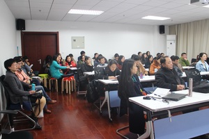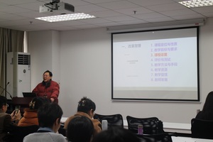 肖飞教授从改革背景、建设内容、实践效果、专家评价、建设愿景等方面,详细介绍了南京林业大学大学英语多元课程体系建设中专门用途英语课程定位与性质、教学目标与要求、教学方法与手段及取得的成绩。肖教授的报告内容充实、生动有趣,与会教师纷纷表示受益良多。(储晨雪)