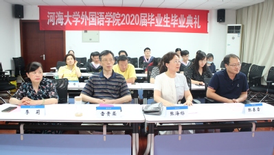 典礼伊始,雷贵荣书记致辞。他对2020届学生的顺利毕业表示祝贺,也期望同学们能秉承河海校训,铭记外院嘱托,承担起历史的接力棒,把爱国之情、报国之志、青春之我融入到波澜壮阔的国家和民族事业中。
