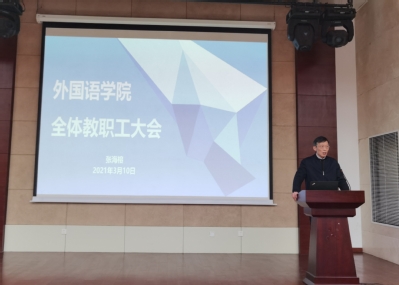3月10日,我院在行政楼一楼报告厅召开全体教职工大会,学院党委书记雷贵荣主持会议。