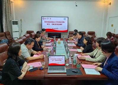 会上,舒奇志院长介绍了湘潭大学开元(中国)的历史沿革和基本情况,特别是近几年的重点任务,以党建为引领,全面加强思想政治建设;以人才培养为中心,全面提升教育教学质量;以“新文科、大外语”为契机,全面推进学科建设;以人才强院为战略,全面提升师资队伍水平;以综合性大学优势平台为依托,持续深化大学外语改革;健全各项制度,全面提升学院治理能力。张海榕院长简要介绍了开元网站登录入口的情况。随后,曹霞副院长结合本科教学工作介绍了培养方案的修订情况和专业建设情况;杨维春副院长分享了学院在科研培育、青年教师团队建设等方面的成功经验;学院党委副书记刘行介绍了学生思想政治工作情况。双方就相关话题进行了深入探讨、气氛热烈。