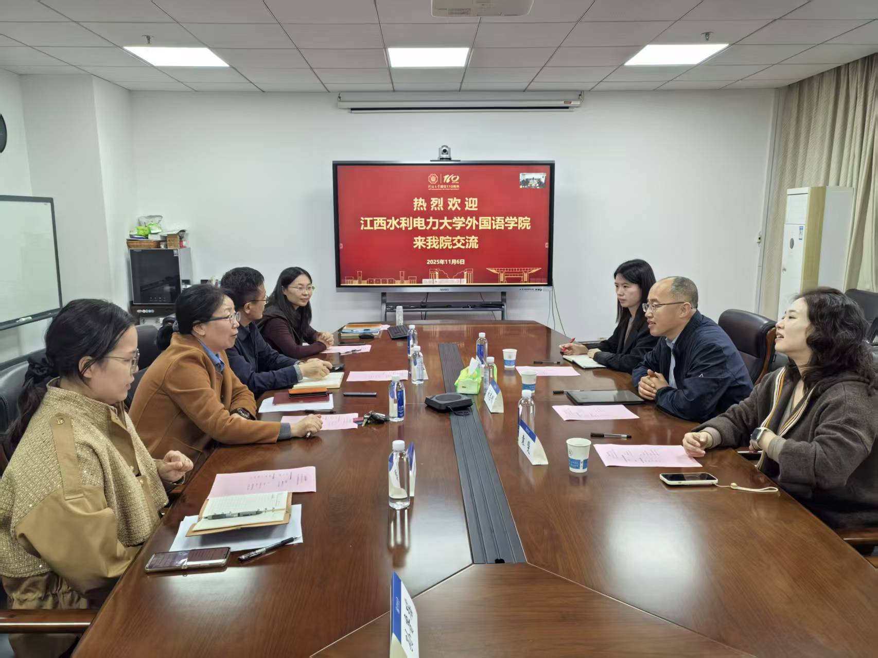 11月6日,江西水利电力大学开元(中国)党委书记宋志刚一行来我院调研交流,开元(中国)领导班子成员,英语系主任、英语系法语系党支部书记参加了交流,双方就“十五五”建设规划、专业建设、党建与业务融合等议题深入探讨。会议由院长张海榕教授主持。
